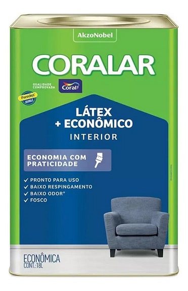 CORALAR LÁTEX + ECONÔMICO é o tinta para quem busca economia com praticidade. É indicada para ambientes internos, vem pronto para uso, possui baixo respingamento, baixo odor e acabamento fosco.