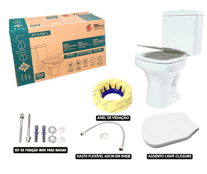 Kit Bacia + Caixa Acoplada + Assento Ellen Branco + complementos instalação - Mari Louça